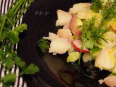 Картофельный салат с овощами и горчичной заправкой
