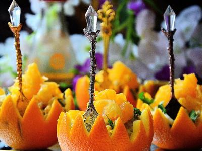 Пикантный салат в апельсиновых корзиночках