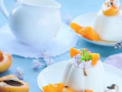 Сливочная панна котта с абрикосами в легком сиропе с миндалем