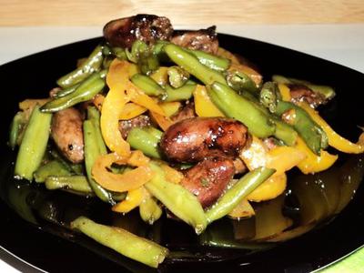 Теплый салат с куриными сердечками