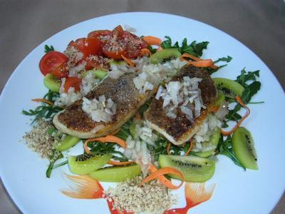 Запеченный козий сыр с гарниром из овощей и фруктов