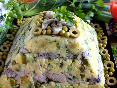 Яйцо куриное, Картофель, Грибы, Горошек зеленый и еще 3 ингредиента