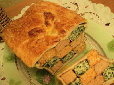 слоеное дрожжевое тесто, филе куриное, яйцо, лук и еще 13 ингредиентов