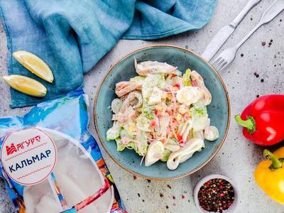 кальмары филе, огурцы свежие, маслины без косточек и еще 4 ингредиента